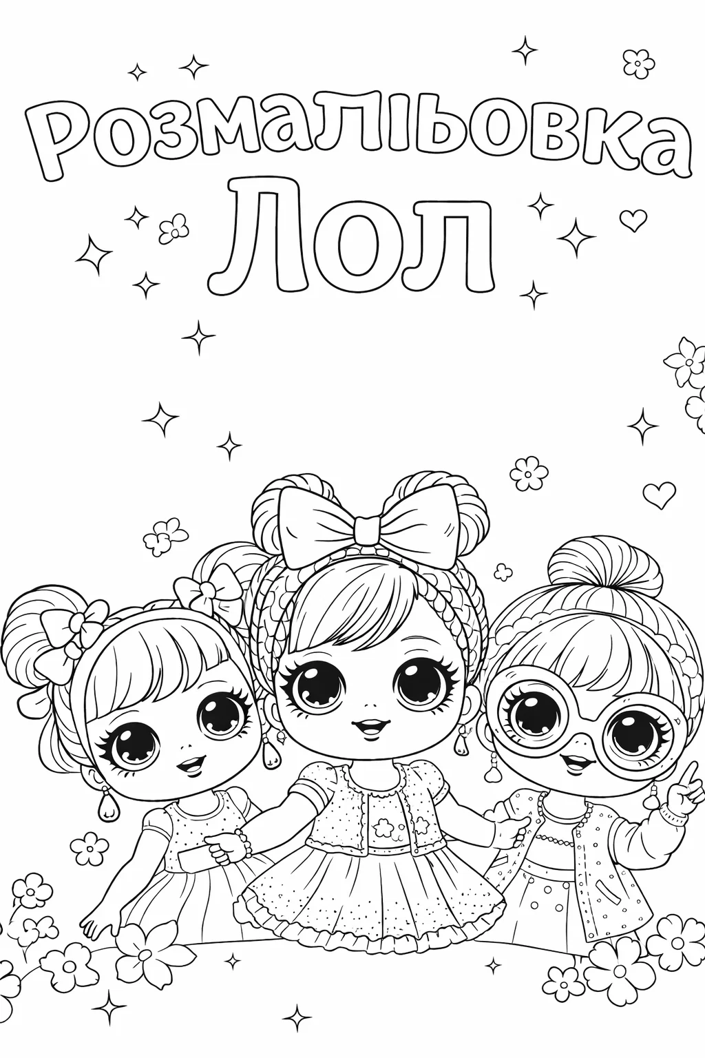 Ця яскрава розмальовка ЛОЛ створена спеціально для маленьких шанувальників популярних ляльок LOL Surprise. На малюнку зображені чарівні ляльки з великими очима, стильними зачісками, бантиками та модним одягом, що надихає на творчість і фантазію. Розфарбовка чудово підходить для розвитку дрібної моторики, уважності та креативного мислення. Малюнок розмальовка має чіткі та акуратні контури, завдяки чому його зручно розфарбовувати олівцями, фломастерами або фарбами. Така розфарбовка стане улюбленим заняттям удома, у дитячому садку чи на святі та легко друкується у форматі А4.