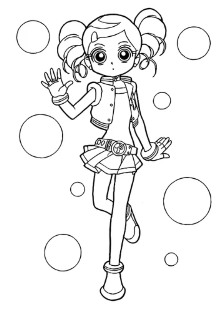Яскрава та мила розфарбовка із аніме дівчиною з бульбашками чудово підійде для дітей і підлітків. Цей цікавий малюнок розмальовка наповнений легкістю, рухом і позитивними емоціями. Розфарбовка допомагає розвивати творче мислення, фантазію та дрібну моторику, адже має багато деталей — стильний одяг, зачіску та декоративні елементи у вигляді бульбашок. Малюнок розмальовка легко розфарбовувати олівцями, маркерами або фарбами. Ви можете швидко скачати та роздрукувати розфарбовку у форматі А4 для веселого та корисного дозвілля.