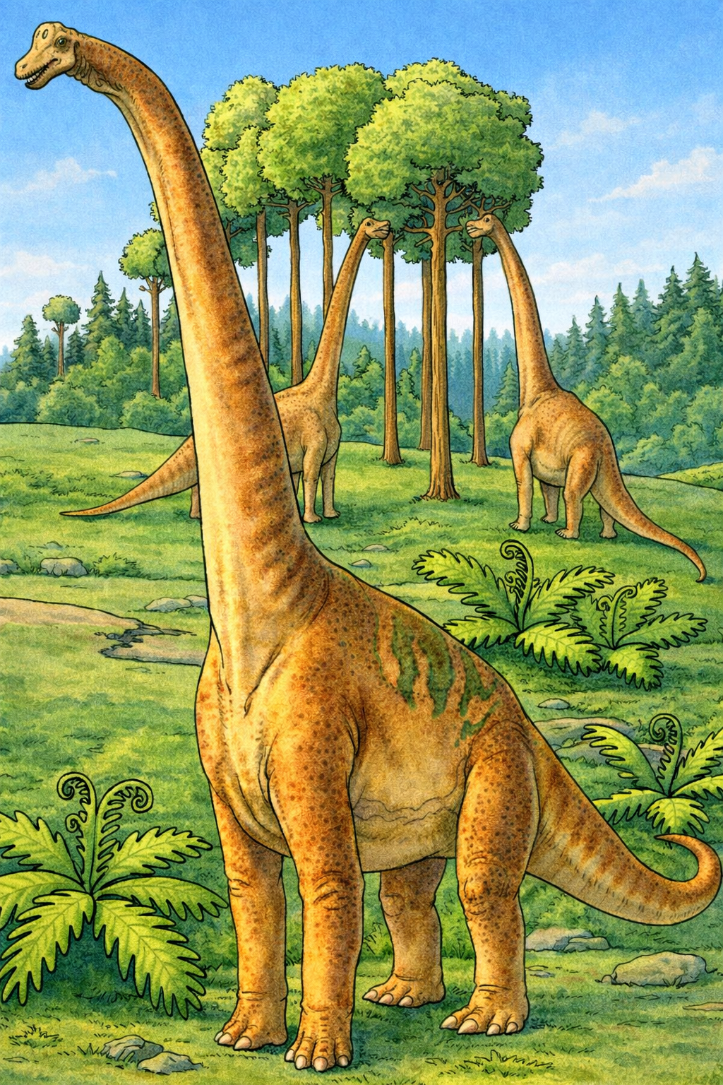 Цікава розфарбовка із зображенням брахіозавра перенесе дітей у світ доісторичної природи. Великий травоїдний динозавр серед дерев робить цей малюнок розмальовка захопливим і пізнавальним. Така розфарбовка допомагає розвивати уяву, уважність і творчі здібності. Малюнок розмальовка має чіткі контури, що підходять для дітей різного віку. Розфарбовка легко скачати та роздрукувати у форматі А4, щоб організувати цікаве дозвілля вдома, у школі або дитячому садку.