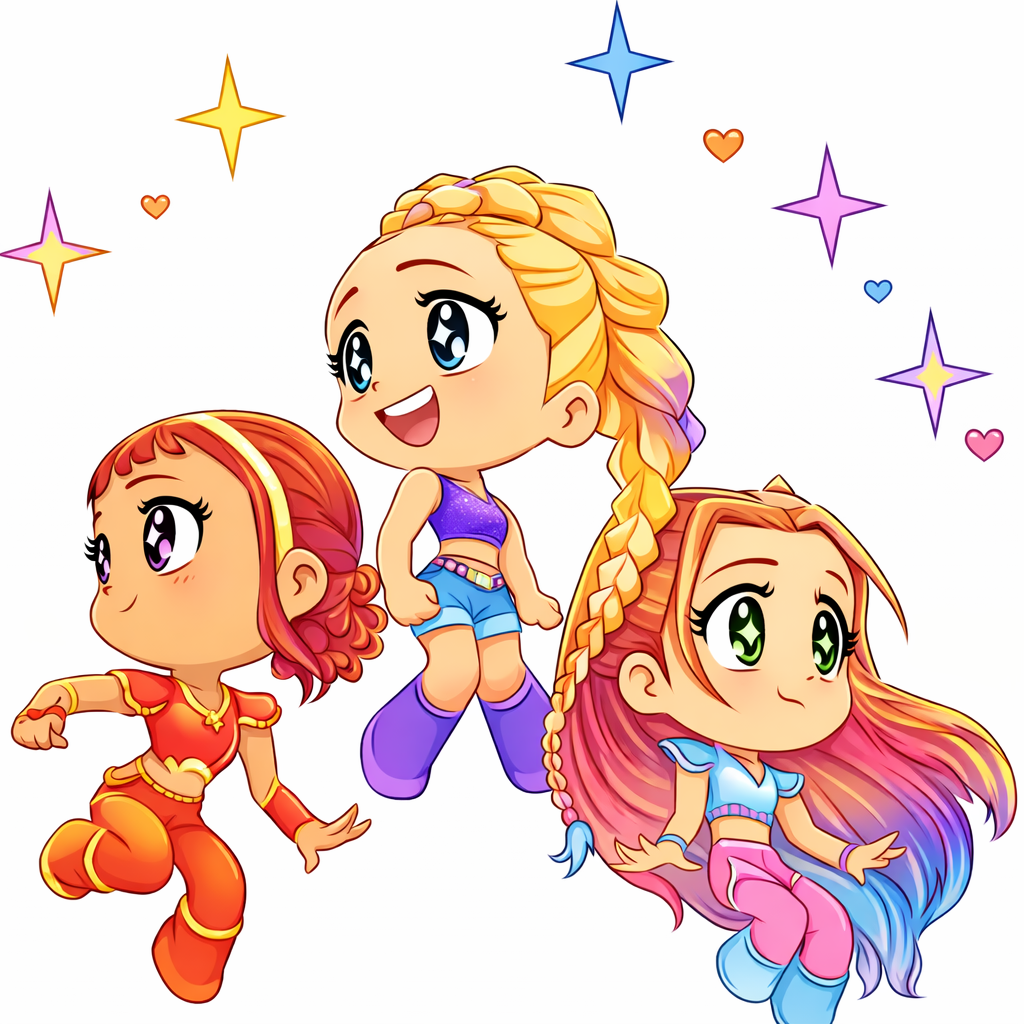 Яскрава та мила розфарбовка із трьома чібі-подружками, які літають серед зірок, подарує дітям радість і натхнення. Цей чарівний малюнок розмальовка наповнений позитивом, дружбою та фантазією. Розфарбовка допомагає розвивати творчі здібності, уяву та дрібну моторику, адже містить багато цікавих деталей — зачіски, одяг і зірочки. Малюнок розмальовка має чіткі контури, що робить його ідеальним для розфарбовування олівцями, фломастерами або фарбами. Ви можете легко скачати та роздрукувати розфарбовку у форматі А4 для веселого проведення часу.