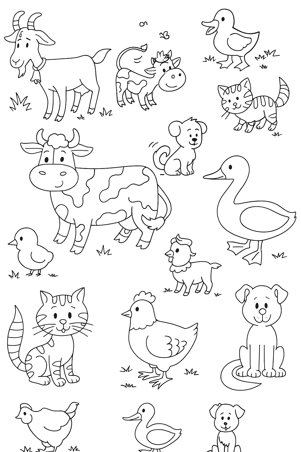 Ця розфарбовка домашні тварини створена для маленьких художників, які люблять природу та тварин. Малюнок розмальовка із зображенням котика, собачки, корівки, кози, курочки, качки та інших мешканців ферми допоможе дітям навчитися розпізнавати тварин і розвивати дрібну моторику. Така розфарбовка чудово підходить для дітей різного віку, адже дозволяє поєднати навчання з веселою грою. Малюнок розмальовка можна легко скачати та роздрукувати у форматі А4, щоб створити барвистий світ домашніх тварин.
