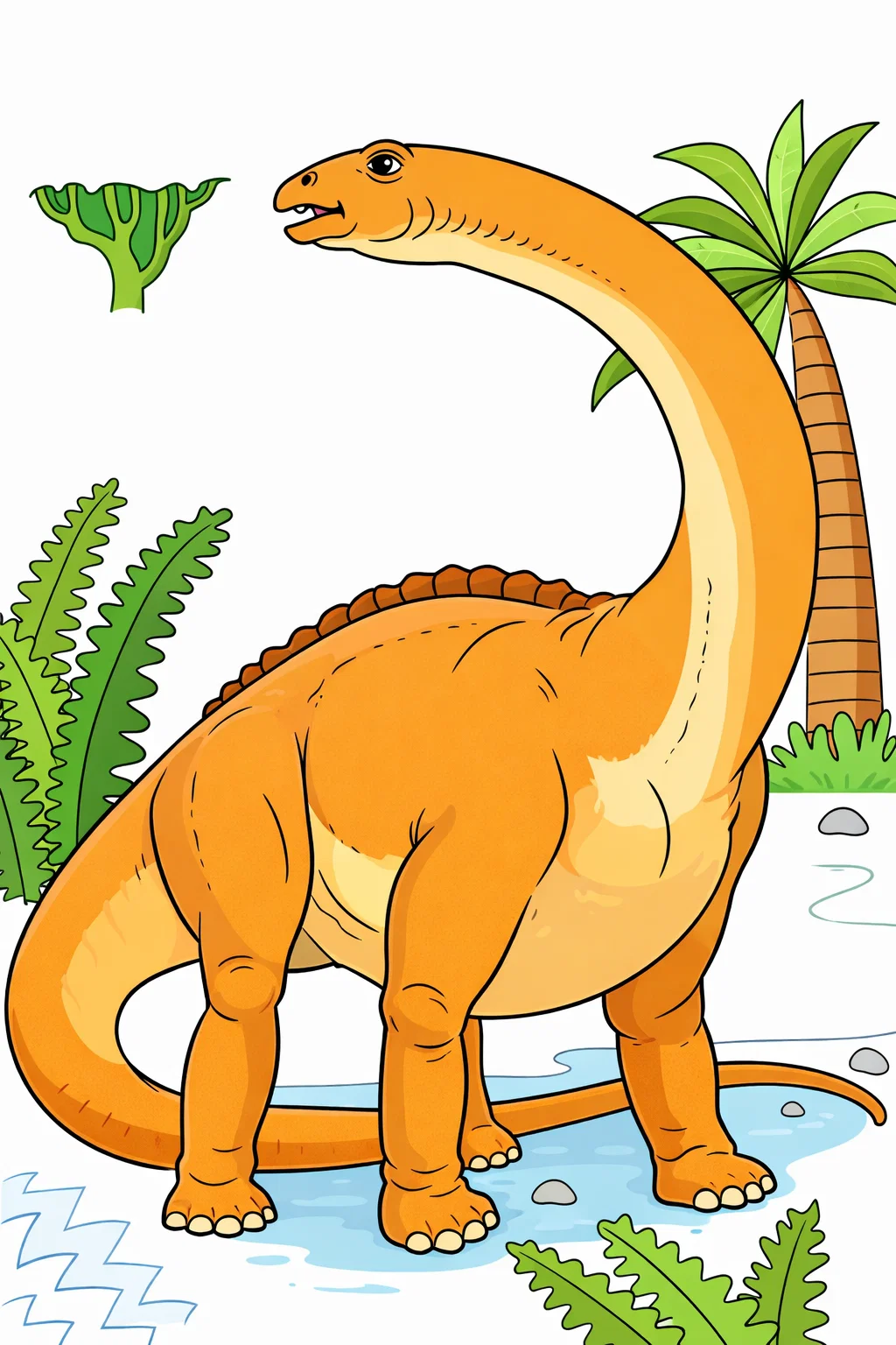 Захоплива розфарбовка із зображенням диплодока перенесе дітей у світ динозаврів та пригод. Великий і доброзичливий динозавр серед доісторичних рослин робить цей малюнок розмальовка цікавим і пізнавальним. Така розфарбовка допомагає розвивати уяву, увагу до деталей і творчі здібності. Малюнок розмальовка має чіткі контури, що підходять для дітей різного віку. Розфарбовка легко скачати та роздрукувати у форматі А4, щоб організувати цікаве заняття вдома, у школі чи дитячому садку.