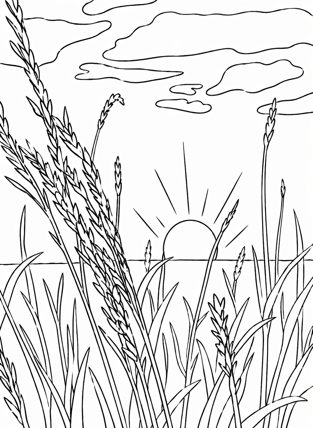 Атмосферна розфарбовка «Захід сонця над польовими травами» перенесе вас у спокійний літній вечір серед природи. Цей витончений малюнок розмальовка зображає колоски трав і сонце, що повільно заходить за горизонт, створюючи гармонійну композицію. Розфарбовка ідеально підходить для дітей і дорослих, допомагає розвивати уяву, уважність та творче мислення. Малюнок розмальовка має чіткі контури, що робить його зручним для розфарбування олівцями, фломастерами чи фарбами. Ви можете легко скачати та роздрукувати розфарбовку у форматі А4 для затишного дозвілля.