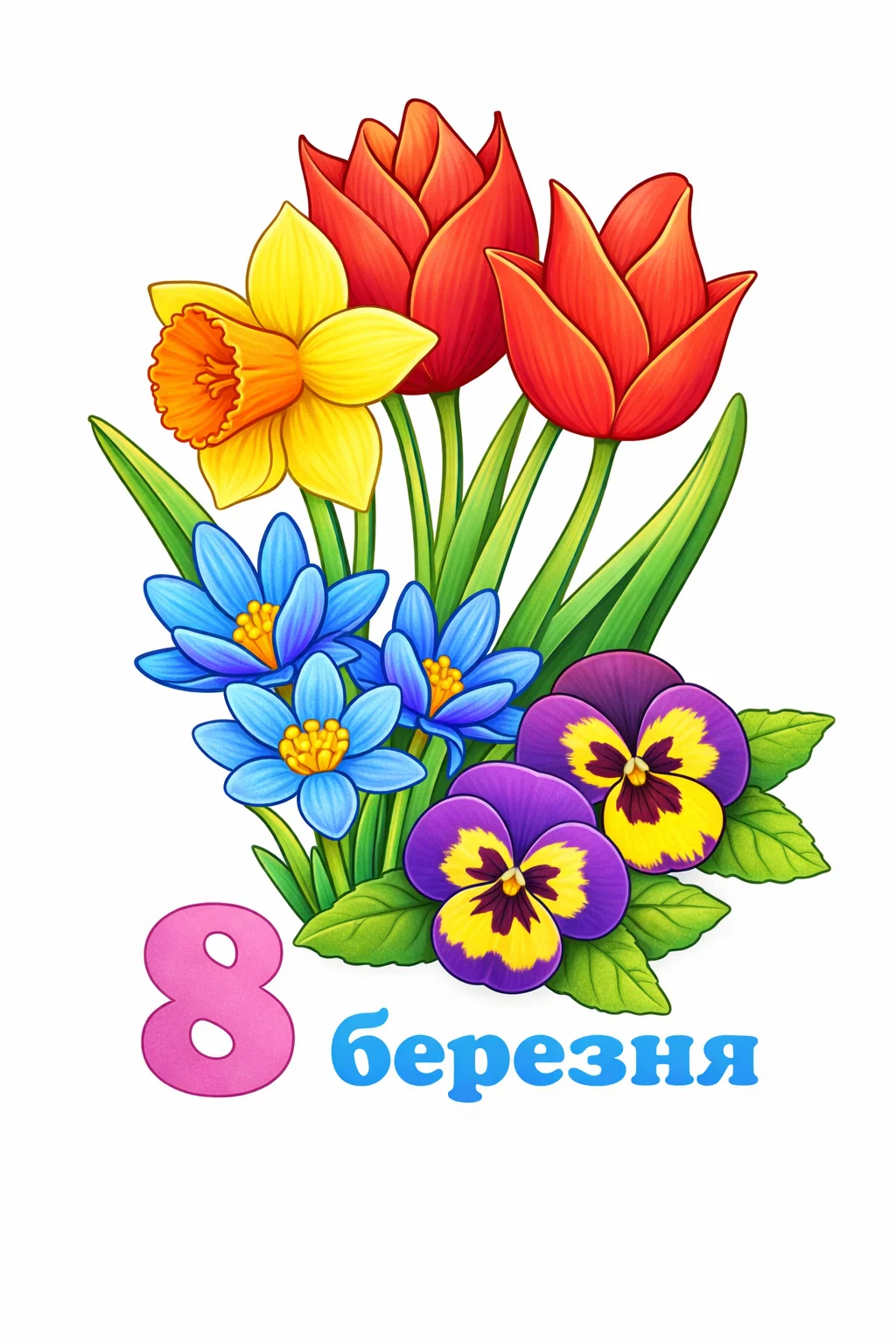 Елегантна розфарбовка до 8 Березня з букетом весняних квітів стане чудовим вибором для творчого відпочинку дорослих. Деталізований малюнок розмальовка із тюльпанами, нарцисами та первоцвітами допомагає розслабитися, зосередитися та отримати задоволення від процесу розфарбовування. Така розфарбовка ідеально підходить для арттерапії, зняття стресу та створення святкового настрою. Малюнок розмальовка можна використати як основу для оригінальної листівки або декору. Файл легко скачати та роздрукувати в форматі А4 для домашнього чи подарункового використання.