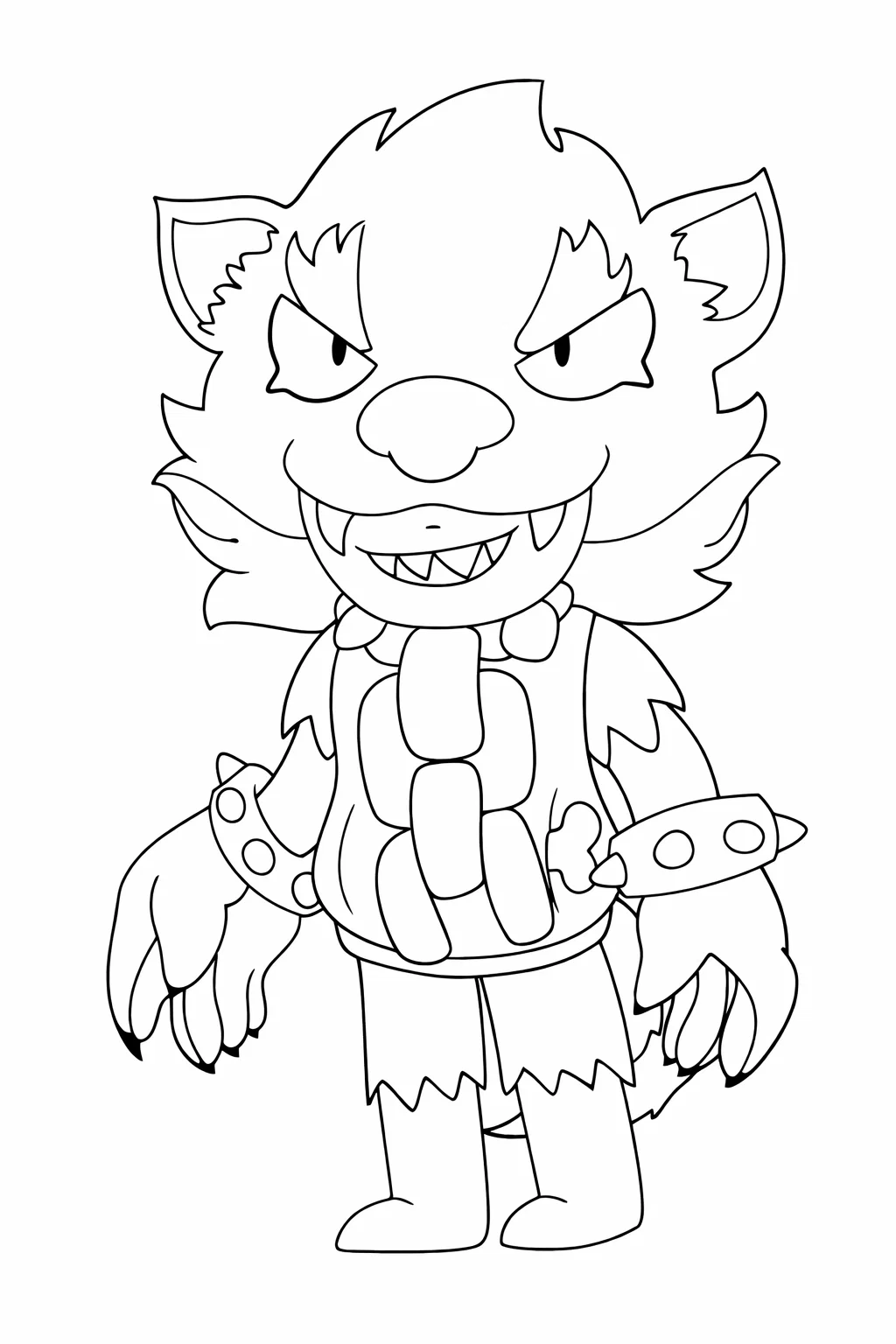 Ефектна та трохи моторошна розфарбовка з популярним персонажем із мультфільмів і відеоігор ідеально підійде для дітей, які люблять незвичайних та сильних героїв. Малюнок розмальовка з Леоном-перевертнем поєднує фантазійний образ звіра, гострі кігті та виразну міміку, що робить процес розфарбовування особливо захопливим. Чіткі контури дозволяють легко працювати олівцями, фломастерами або фарбами. Така розфарбовка розвиває уяву, уважність і дрібну моторику. Малюнок розмальовка можна скачати та роздрукувати у форматі А4 для творчих занять удома або в школі.