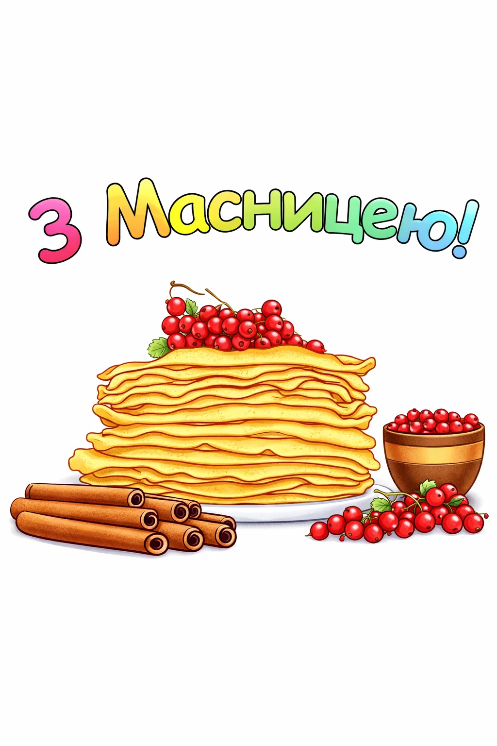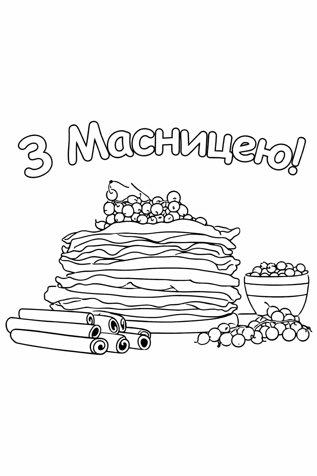 Ця святкова розмальовка для дорослих присвячена традиційному українському святу Масниці та смачним млинцям. Малюнок розмальовка з апетитною гіркою млинців, ягодами та солодкими рулетами виконаний у чорно-білому стилі з чіткими рівними контурами на світлому фоні, без тіней і штрихування. Така розфарбовка ідеально підходить для творчого відпочинку, медитації та зняття стресу. Малюнок розмальовка можна розфарбовувати олівцями, фломастерами або гелевими ручками. Зображення легко скачати та роздрукувати у форматі А4 для домашніх творчих занять і святкового настрою.