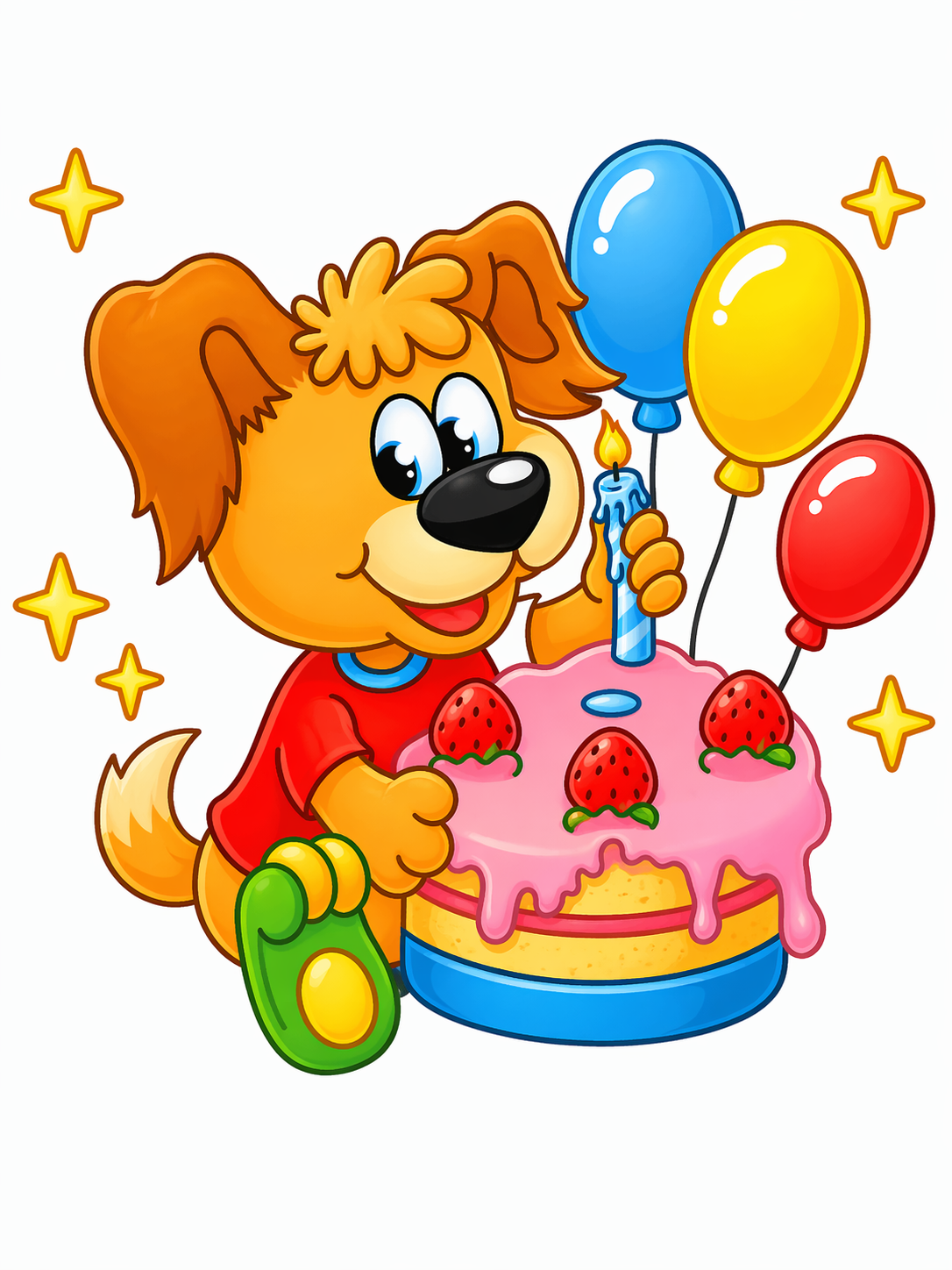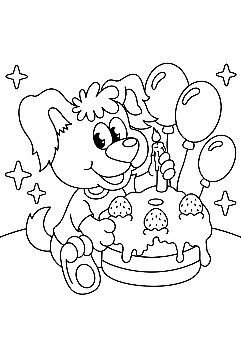 Святкова розфарбовка «Щеня святкує день народження» подарує дітям радість і гарний настрій. Цей милий малюнок розмальовка зображає веселого песика з тортом, свічкою та повітряними кульками. Розфарбовка допомагає розвивати творче мислення, фантазію та дрібну моторику, адже має чіткі контури й цікаві деталі. Малюнок розмальовка ідеально підходить для розфарбування олівцями, фломастерами або фарбами, створюючи яскраву святкову атмосферу. Ви можете легко скачати та роздрукувати розфарбовку у форматі А4 для веселого дозвілля або підготовки до свята.