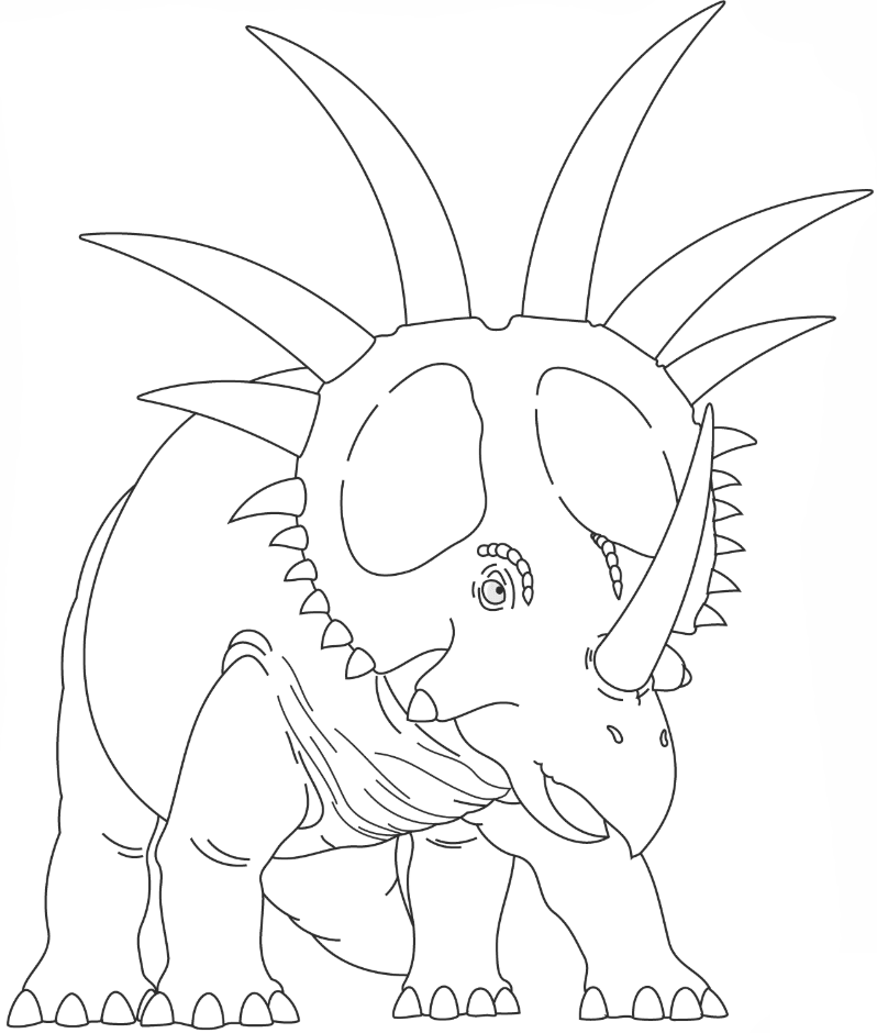 Цікава розфарбовка із зображенням стиракозавра стане чудовим варіантом для дітей, які захоплюються динозаврами. Незвичайний малюнок розмальовка демонструє динозавра з великим рогом і характерними шипами на голові, що робить процес розфарбування ще цікавішим. Така розфарбовка допомагає розвивати уяву, увагу до деталей та творчі здібності. Малюнок розмальовка має чіткі контури, що підходять для дітей різного віку. Розфарбовка легко скачати та роздрукувати у форматі А4 для захопливого дозвілля вдома або в школі.