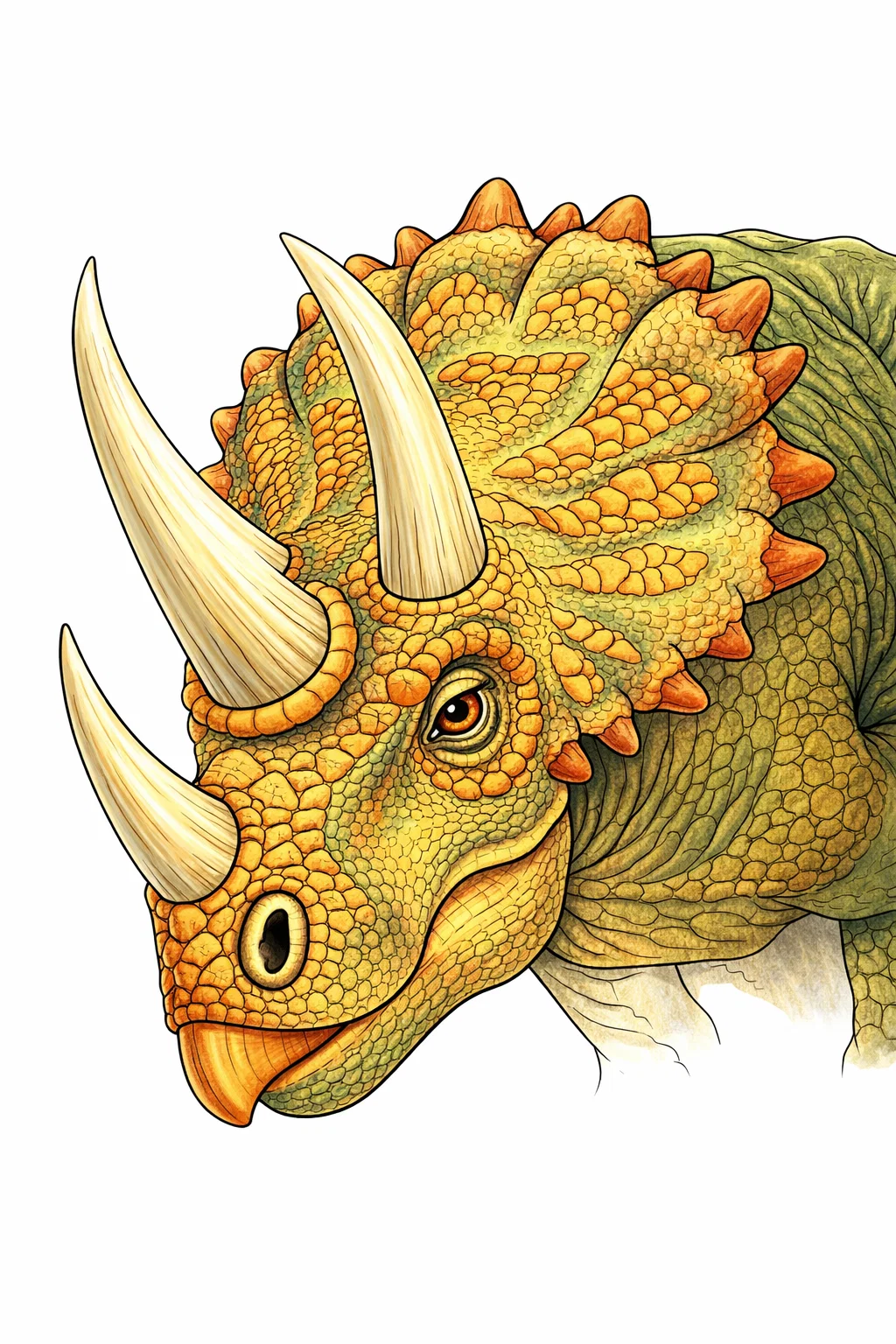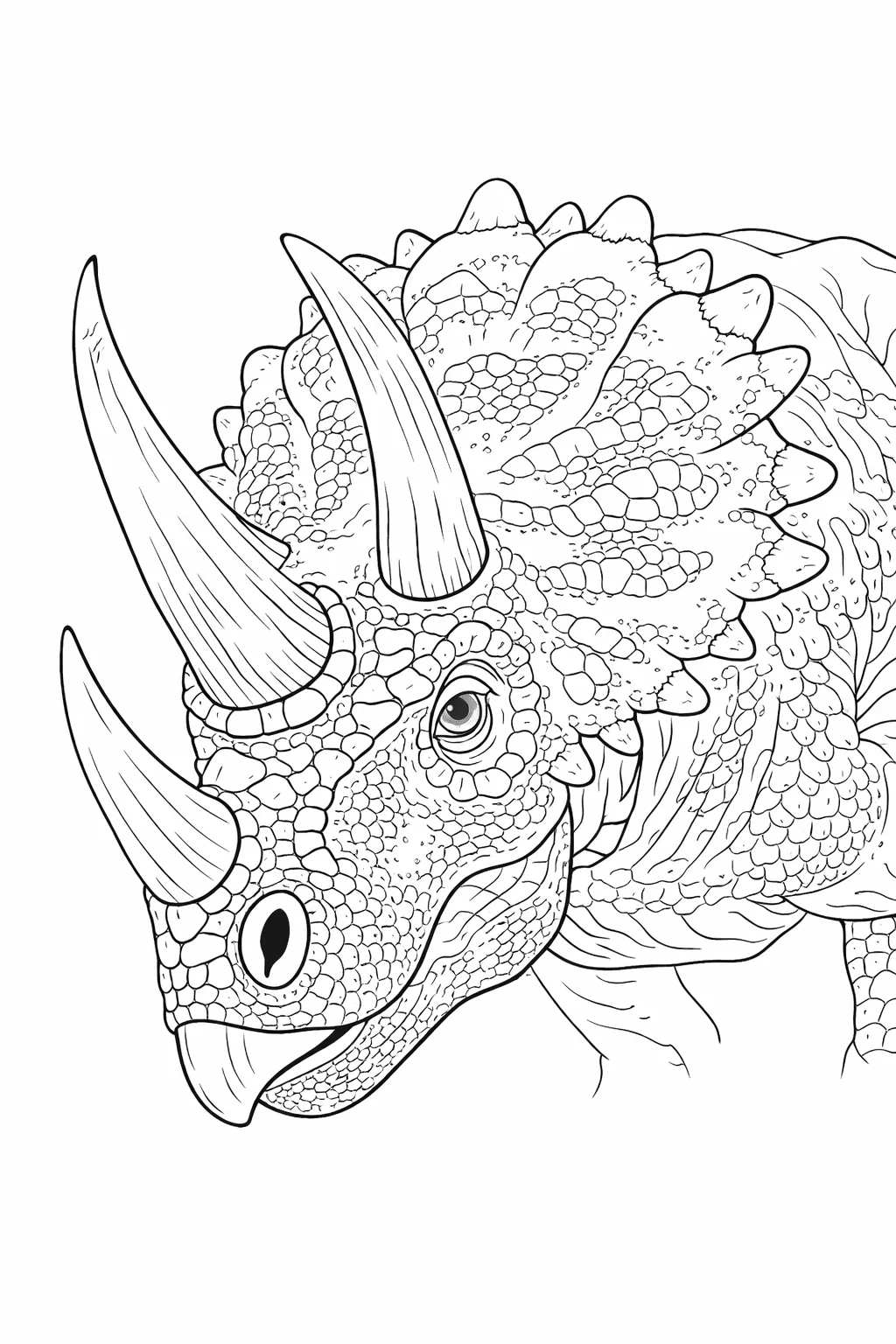 Деталізована розфарбовка із зображенням трицератопса крупним планом стане чудовим вибором для дітей, які цікавляться динозаврами. Цей малюнок розмальовка дозволяє уважно розглянути роги та текстуру шкіри доісторичної тварини, що робить процес розфарбування ще більш захопливим. Розфарбовка сприяє розвитку дрібної моторики, фантазії та творчих навичок. Малюнок розмальовка має чіткі контури, тому підходить для розфарбовування олівцями, фломастерами або фарбами. Ви можете легко скачати та роздрукувати розфарбовку у форматі А4 для цікавого дозвілля.
