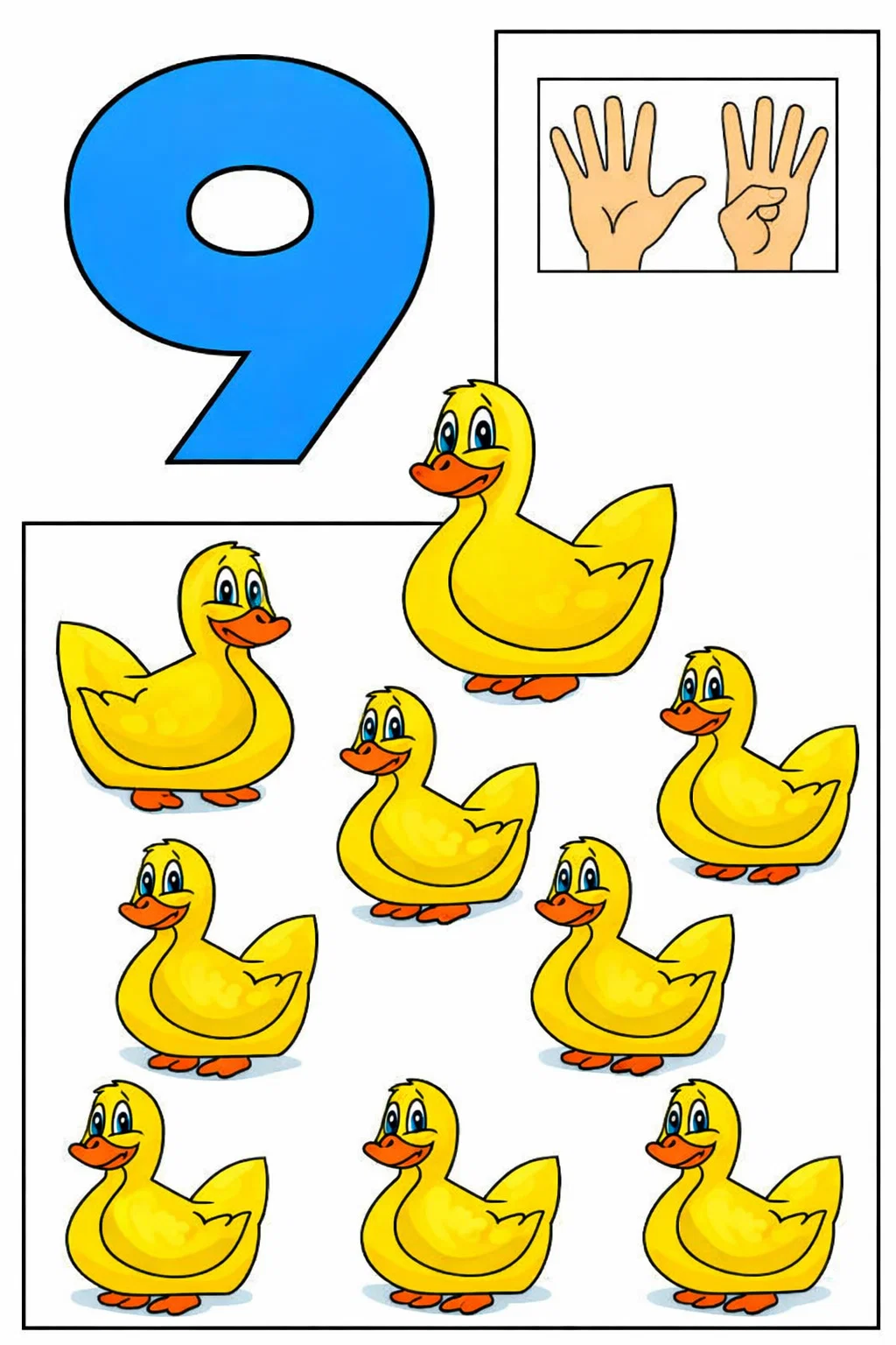 Навчальна розфарбовка з цифрою 9 та веселими качечками допоможе дитині швидко запам’ятати число та потренувати лічбу. Малюнок розмальовка поєднує навчання і творчість: дитина рахує персонажів, підбирає кольори та розвиває уяву. Така розфарбовка чудово підходить для дошкільнят і молодших школярів, сприяє розвитку моторики, уважності та логічного мислення. Малюнок розмальовка можна використовувати вдома, у садочку чи на заняттях. Зображення легко скачати та роздрукувати у форматі А4 для цікавого навчання.