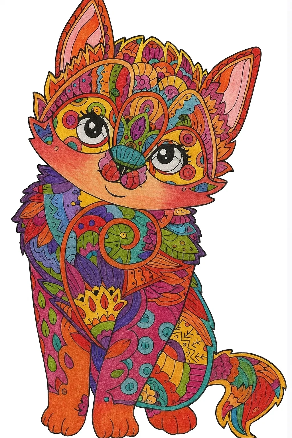 Розмальовка тварини антистрес лисиня — це чудова розфарбовка для тих, хто хоче відпочити душею та розвинути творче мислення. Малюнок розмальовка з безліччю дрібних елементів і візерунків допомагає зняти стрес, заспокоїтися та зануритися у світ гармонії. Така розфарбовка підходить і для дітей, і для дорослих, адже кожен може створити власного чарівного лисеняти в унікальних кольорах. Цю розмальовку легко скачати та роздрукувати у форматі А4, щоб насолоджуватися творчістю будь-де.