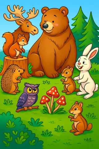Ця розфарбовка тварини лісу чудово підходить для дітей, які люблять природу та казкових мешканців лісу. Малюнок розмальовка із зображенням ведмедя, вовка, зайчика, лося, білочки, сови та лисиці допоможе малюкам вивчити назви тварин і розвинути дрібну моторику. Розфарбовка заспокоює, розвиває уяву й фантазію, адже кожна дитина може створити свій власний барвистий ліс. Малюнок розмальовка можна легко скачати та роздрукувати у форматі А4, щоб розпочати творчу пригоду з лісовими друзями.
