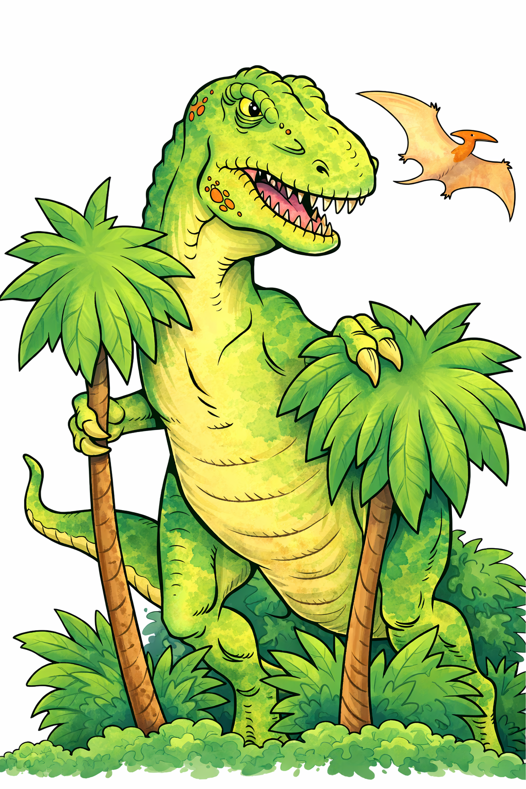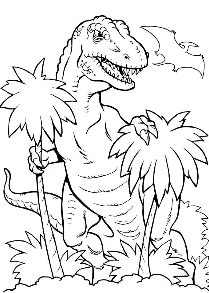Цікава розфарбовка із зображенням тиранозавра в доісторичному лісі стане чудовим вибором для дітей, які люблять динозаврів. Деталізований малюнок розмальовка показує могутнього хижака серед пальм і природи, що робить процес розфарбування ще цікавішим. Така розфарбовка сприяє розвитку уяви, творчих здібностей і дрібної моторики. Малюнок розмальовка має чіткі контури, що підходять для дітей різного віку. Розфарбовка легко скачати та роздрукувати у форматі А4 для веселого та пізнавального дозвілля.