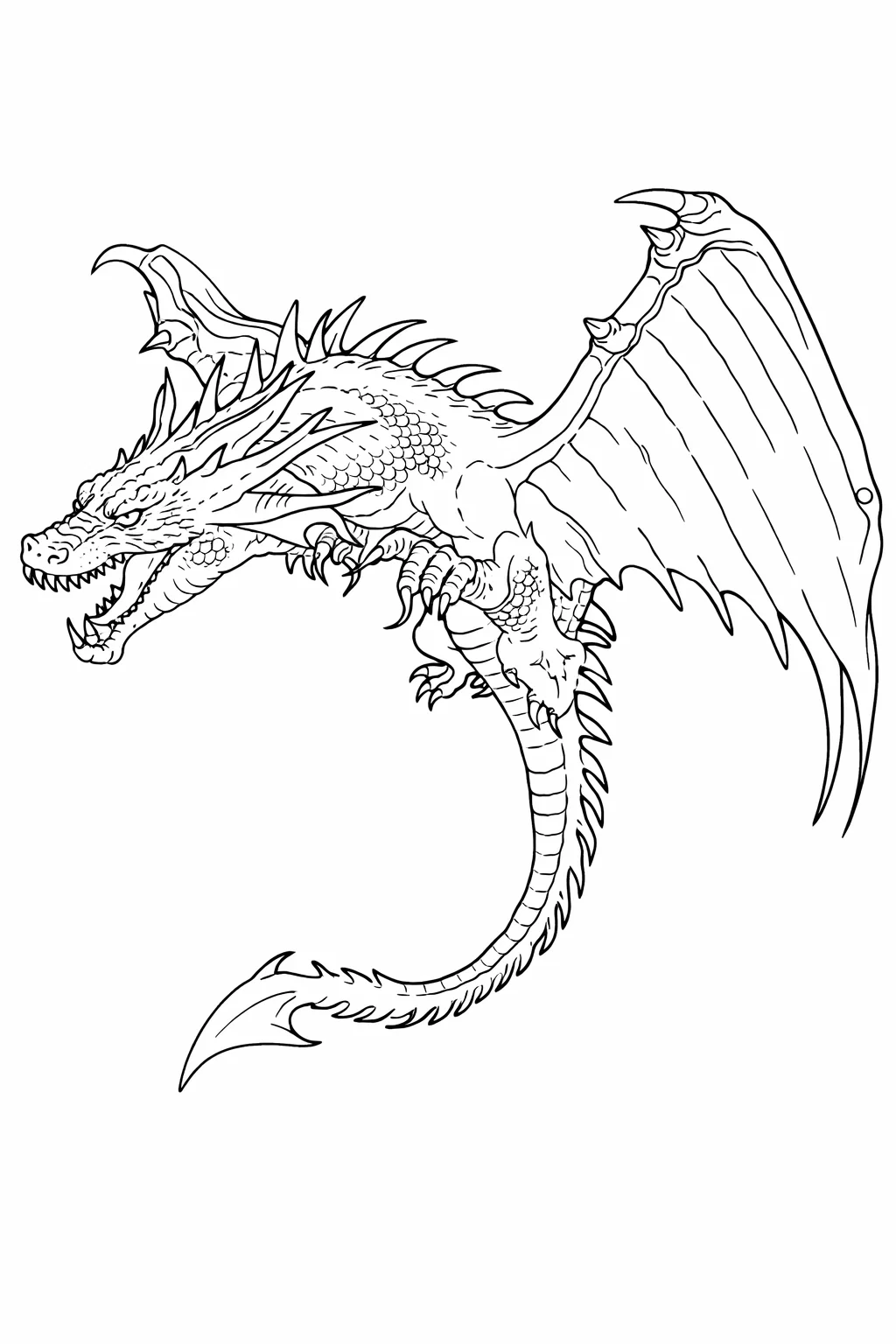 Ефектна розфарбовка із зображенням величного дракона стане чудовим вибором для дітей та любителів фентезі. Деталізований малюнок розмальовка показує могутнього дракона з розправленими крилами, гострими кігтями та лускатим тілом, що робить процес розфарбування надзвичайно захопливим. Розфарбовка допомагає розвивати фантазію, уважність і творчі навички. Малюнок розмальовка має чіткі контури, тому підходить для олівців, фломастерів або фарб. Ви можете легко скачати та роздрукувати цю розфарбовку у форматі А4 для цікавого дозвілля.
