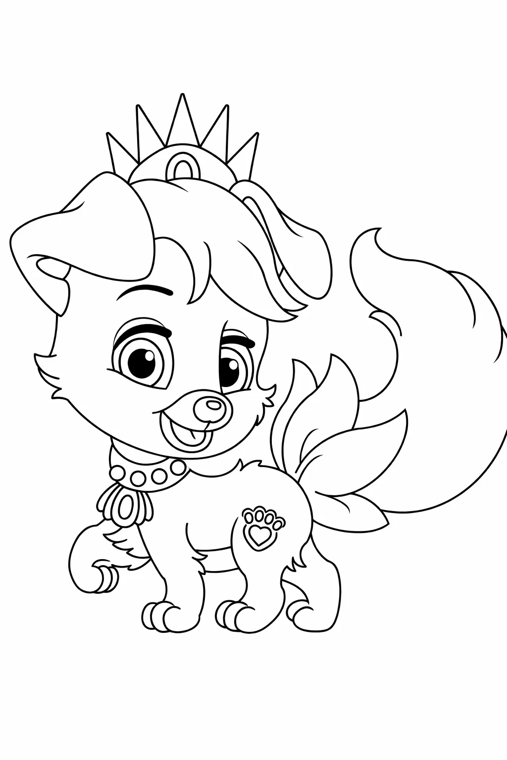 Чарівна розмальовка у стилі дісней із милим вихованцем принцеси стане улюбленою сторінкою для дітей, які обожнюють казкових тваринок. Цей малюнок розмальовка зображує веселого песика з короною та прикрасами, що додає сюжету казковості й радості. Розфарбовка допомагає розвивати дрібну моторику, уяву, уважність і творчі здібності. Вона чудово підходить для занять удома, у дитячому садку чи школі. Картинку легко скачати та роздрукувати у форматі А4, щоб дитина могла із задоволенням зануритися у світ фантазії та кольорів.