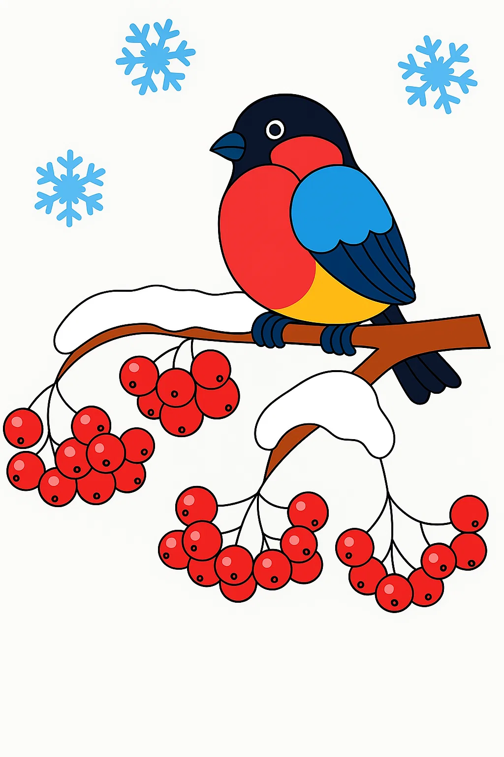 Малюнок розмальовка «Пташка взимку на гілці горобини» — це гарна зимова розфарбовка для дітей 10+ років, яка передає атмосферу холодного сезону. Сніжинки, ягідки та пухнаста пташка створюють затишний зимовий настрій. Ця розмальовка допоможе розвинути уважність, дрібну моторику та відчуття кольору. Завдяки простим, але естетичним деталям, малюнок підходить не лише дітям, а й дорослим для релаксації. Скачайте розфарбовку у форматі А4 безкоштовно, роздрукуйте та подаруйте собі або дитині цікаве творче заняття в холодну пору року.