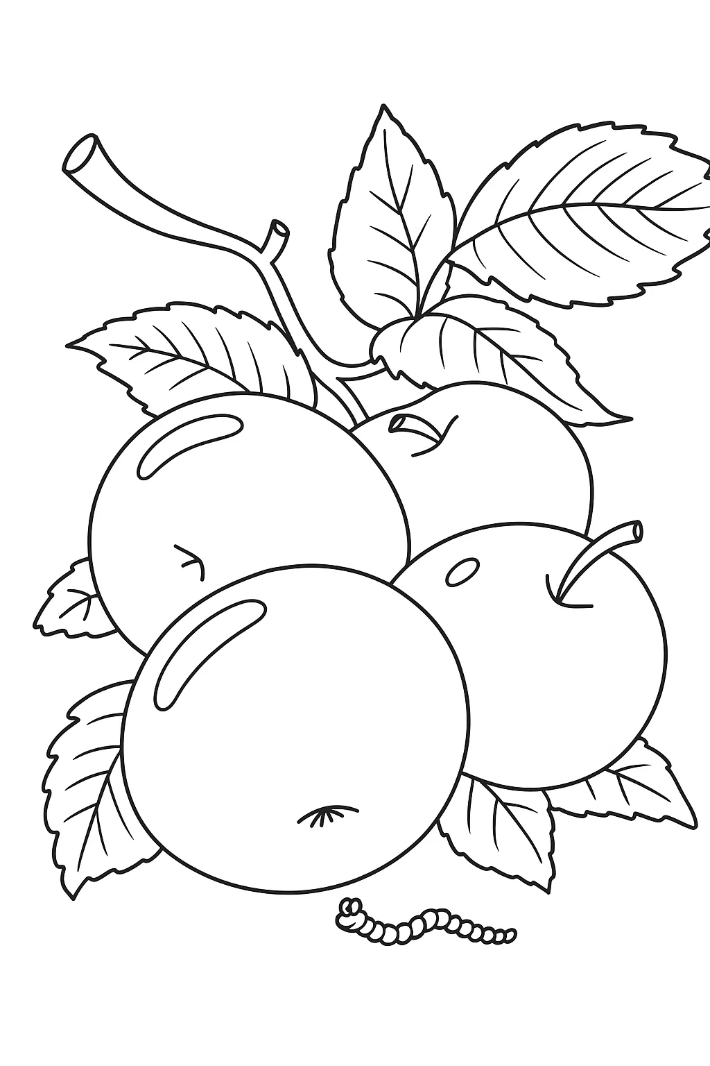 Малюнок розмальовка «Яблука на гілці» — пізнавальна розфарбовка для дітей 2-3 років, яка знайомить малюків з дарами природи. На малюнку зображені соковиті яблучка з листочками, що ростуть на гілочці, а поряд — маленький черв’ячок. Така проста і зрозуміла розфарбовка сприяє розвитку дрібної моторики, уважності та знань про фрукти. Малюнок розмальовка ідеально підходить для занять у дитячому садку чи вдома. Розфарбовку можна безкоштовно скачати та роздрукувати у форматі А4.