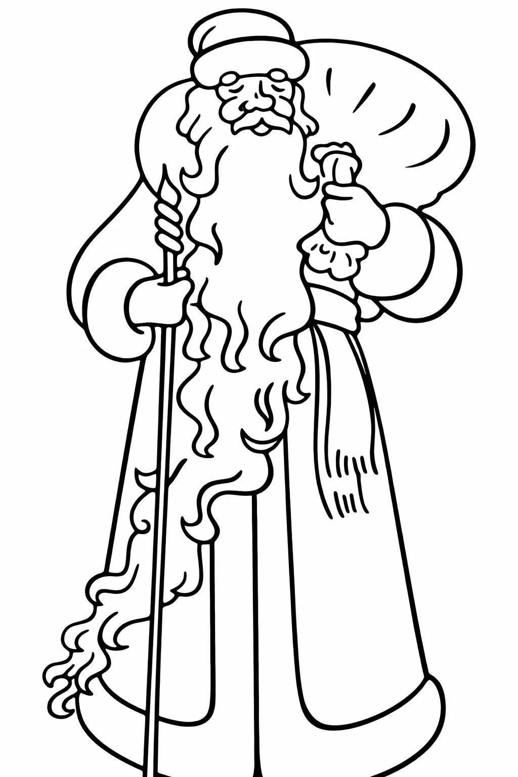 Новорічна розмальовка для дівчат із зображенням Діда Мороза — чудова розфарбовка для створення святкового настрою. Цей деталізований малюнок розмальовка дозволяє дітям проявити свою креативність, підбираючи кольори для чарівного образу зимового чарівника. Розмальовка допомагає розвивати моторику рук, фантазію та любов до свят. Ідеально підійде для дітей різного віку. Ви можете скачати та роздрукувати в форматі А4 та розпочати магічну подорож у світ казки вже сьогодні!