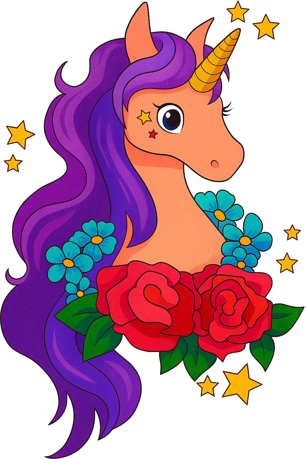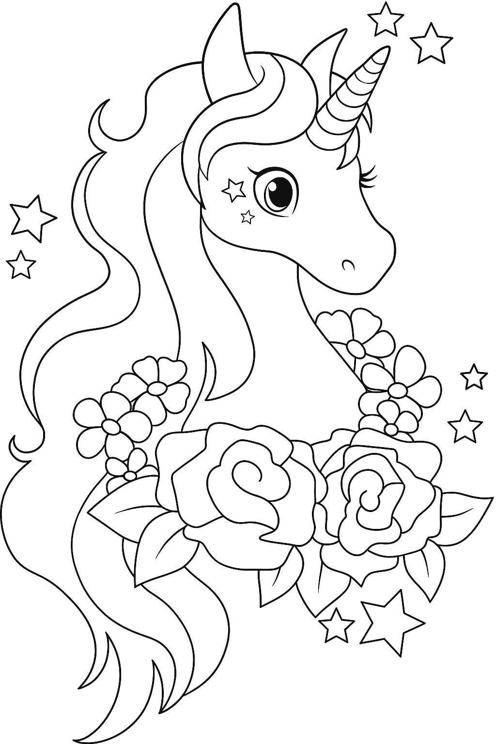 Розмальовки для дівчат єдиноріг та троянди — це чарівна розфарбовка, що поєднує магію, ніжність і красу. Малюнок розмальовка з милою мордочкою єдинорога, оточеного трояндами й зірками, допоможе дитині поринути у світ фантазії та казкових снів. Така розфарбовка сприяє розвитку уваги, творчого мислення й акуратності. Розфарбуйте гривку, квіти та зірочки в яскраві кольори — і створіть власну казкову історію! Цю розфарбовку можна легко скачати та роздрукувати безкоштовно у форматі А4.