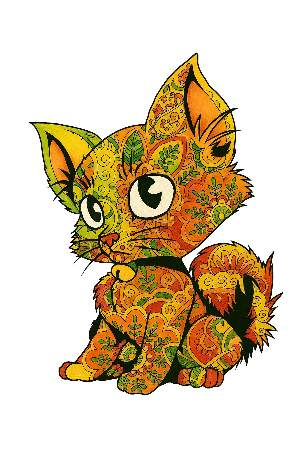 Розмальовки для дівчат кошеня антистрес — це чудова розфарбовка для розвитку уваги, фантазії та релаксації. Малюнок розмальовка з милим кошеням, прикрашеним візерунками, створений для тих, хто любить деталі та хоче зануритися у творчість. Така розфарбовка допоможе зняти напругу та подарує позитивні емоції дітям і дорослим. Розфарбуйте це чарівне кошеня яскравими кольорами, створюючи власний шедевр. Завантажуйте безкоштовно та роздруковуйте у форматі А4 для приємного дозвілля.