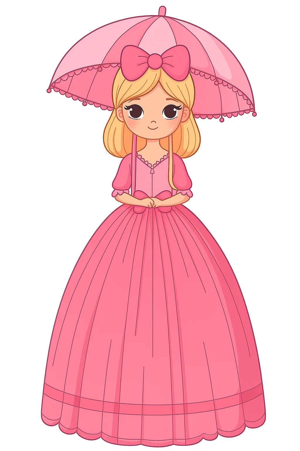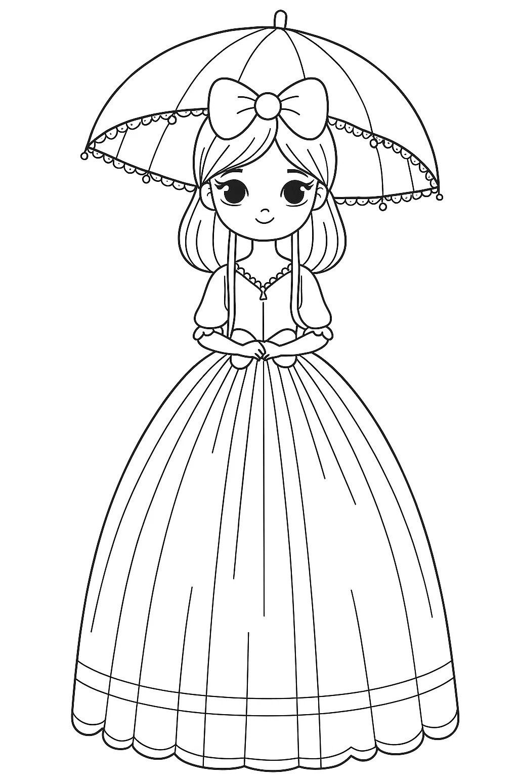 Розмальовки для дівчат лялька з парасолькою — це чарівна розфарбовка для юних художниць, які люблять модні сукні, бантики й казкові образи. Малюнок розмальовка із милою дівчинкою у довгій сукні та з парасолькою допоможе розвинути увагу, акуратність і почуття кольору. Така розфарбовка створена, щоб дарувати радість і натхнення, дозволяючи кожній дитині проявити свою фантазію. Цю розфарбовку можна легко скачати та роздрукувати безкоштовно у форматі А4.