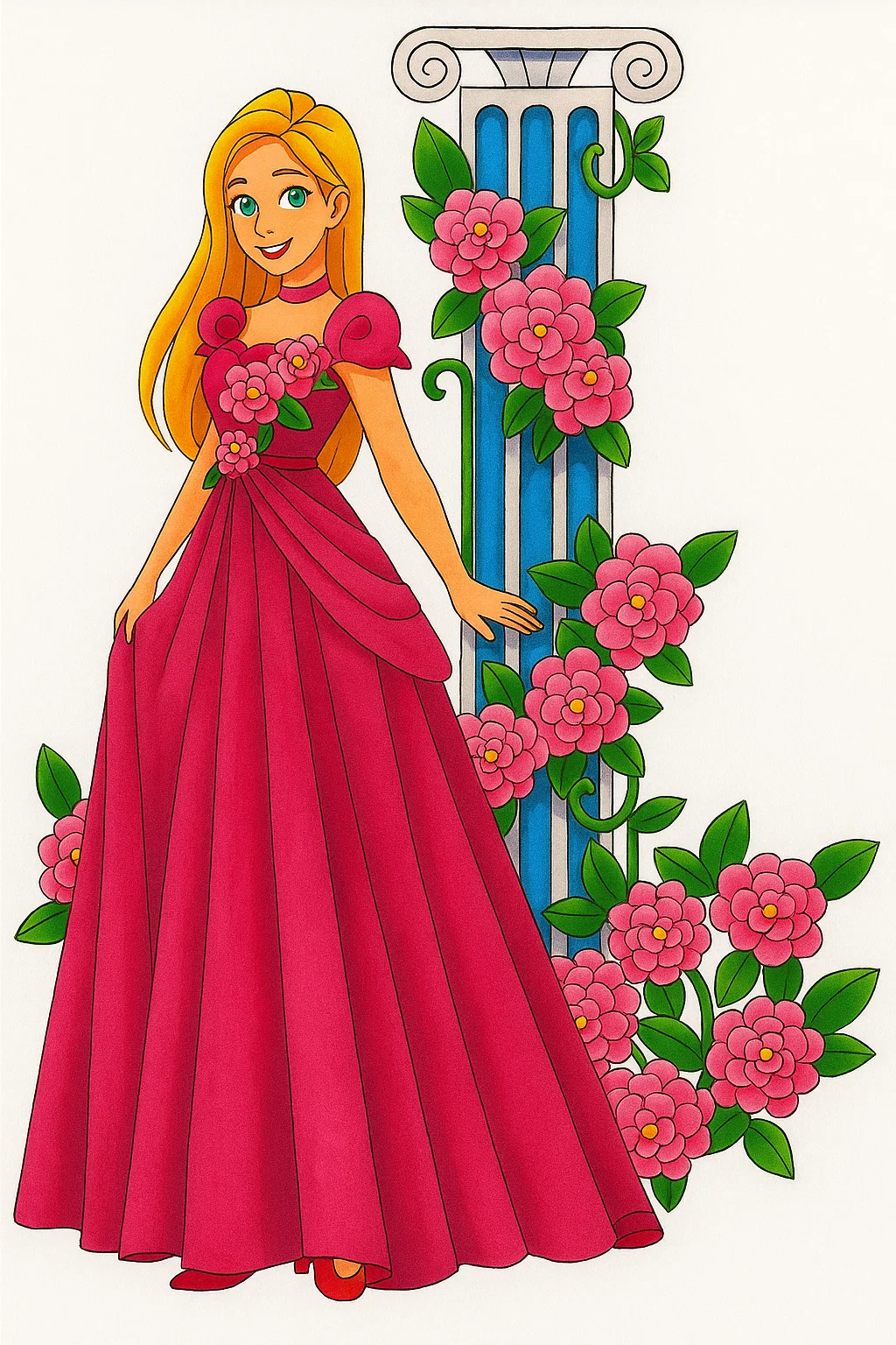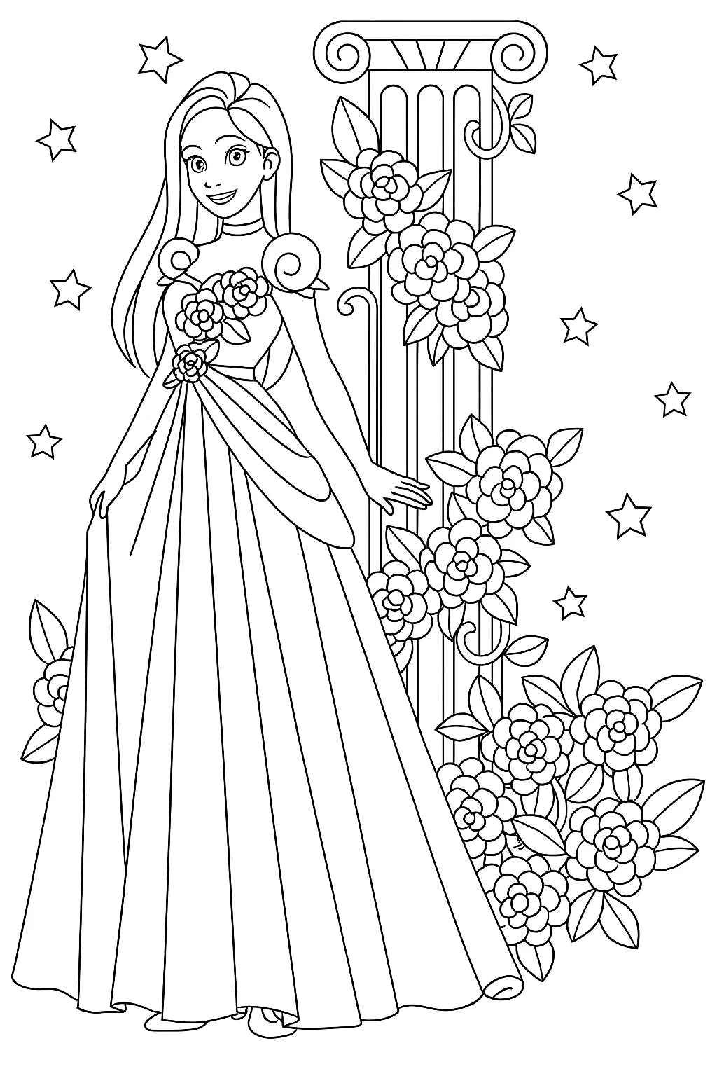 Малюнок розмальовка «Принцеса серед квітів» — ідеальна розфарбовка для дівчат, які мріють про казковий світ. Прекрасна принцеса в елегантній сукні, оточена розкішними квітами та зірками, неодмінно захопить юних художниць. Ця розмальовка розвиває фантазію, відчуття кольору та уважність до деталей. Малюнок підходить як для дошкільнят, так і для дітей шкільного віку. Скачайте та роздрукуйте розфарбовку у форматі А4 — і пориньте в чарівну атмосферу творчості. Це чудовий спосіб провести час з користю й натхненням.