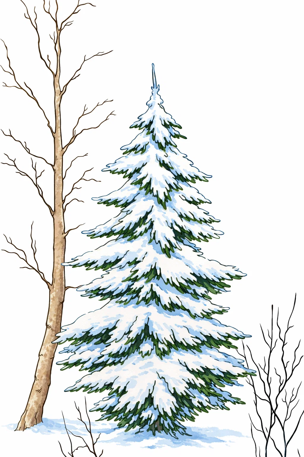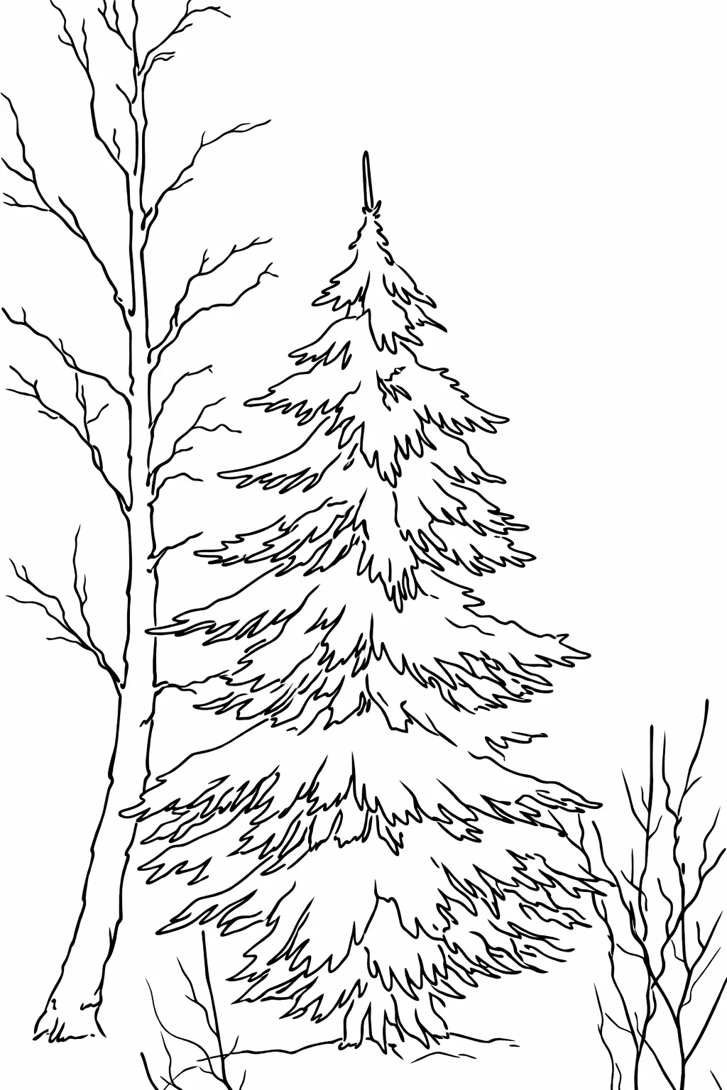 Ця розмальовка для дівчат із зображенням засніженої ялинки в зимовому лісі — чудова розфарбовка, яка створює затишний настрій. Малюнок має середню складність, тому підходить як для дітей, так і для підлітків. Завдяки детальному опрацюванню гілок ялинки та сусідніх дерев ця розмальовка ідеально тренує уважність і дрібну моторику. Ви можете скачати та роздрукувати її у форматі А4, щоб насолодитися процесом творчості та створити власну зимову казку.