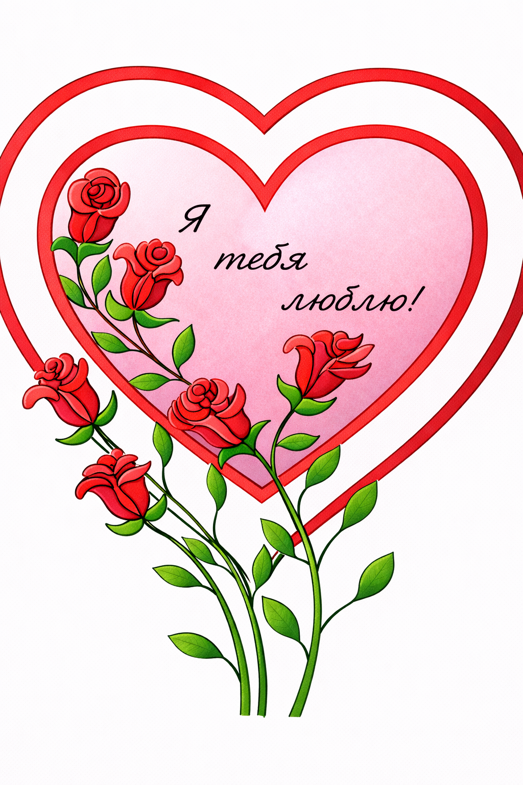 Витончена розфарбовка до Дня святого Валентина із великим подвійним серцем, ніжними трояндами та написом «Я тебе люблю» стане чудовим способом розслабитися та створити особливий настрій. Цей малюнок розмальовка підходить для дорослих і підлітків, які люблять деталізовані квіткові візерунки. Розфарбовка допоможе зняти стрес, розвинути творчість і створити унікальну листівку власноруч. Ідеально підходить для друку у форматі А4.