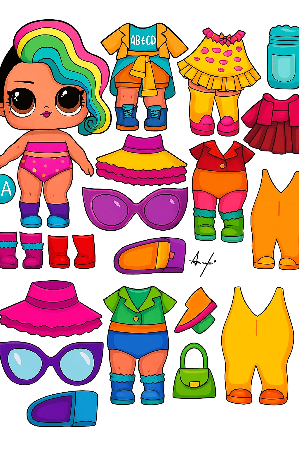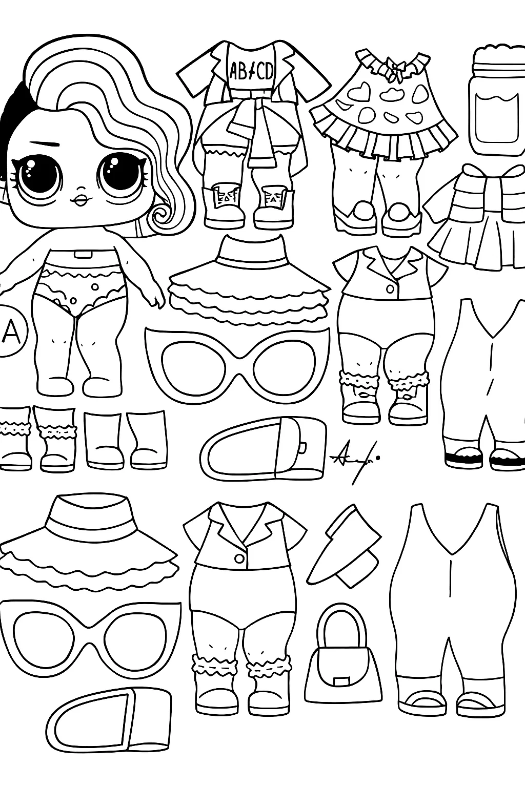 Цікава розфарбовка Лол для вирізування стане улюбленою забавкою для дітей, які люблять творчість і модні ігри! Малюнок розмальовка включає ляльку Лол та різноманітні елементи одягу — сукні, спіднички, взуття, окуляри та аксесуари. Дитина може самостійно розфарбувати, вирізати та створювати власні стильні образи для улюбленої героїні. Така розфарбовка розвиває фантазію, дрібну моторику та почуття стилю. Малюнок розмальовка легко скачати та роздрукувати у форматі А4, щоб насолоджуватись творчістю у будь-який момент.