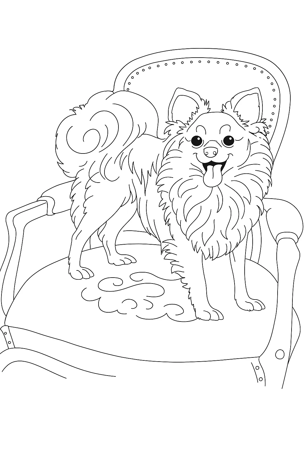 Малюнок розмальовка «Веселий песик на кріслі» — чудовий варіант розфарбовки для малюків віком 2-3 років. Цей милий пухнастий песик стоїть на великому м’якому кріслі та виглядає дуже задоволеним і щасливим. Простий контур і великі деталі дозволяють дитині легко розфарбовувати малюнок, тренуючи моторику рук і уважність. Така розфарбовка розвиває фантазію та допомагає дітям краще пізнавати навколишній світ. Малюнок розмальовка підходить для занять удома або в дитячому садку. Його можна безкоштовно скачати та роздрукувати у форматі А4.