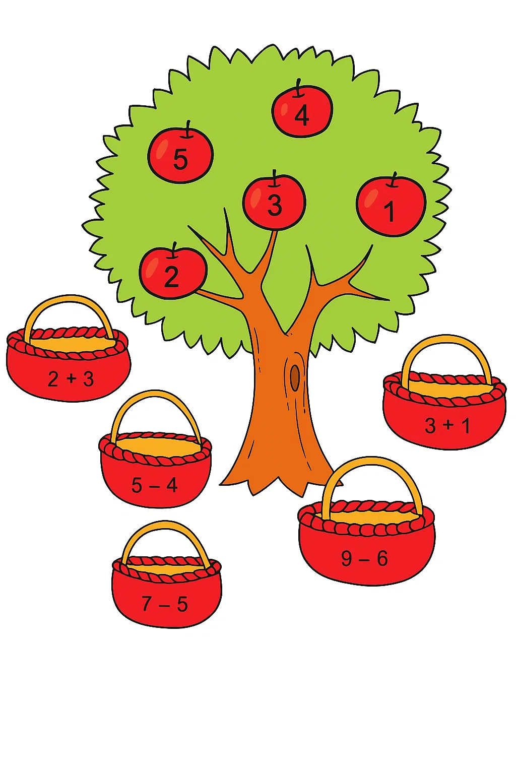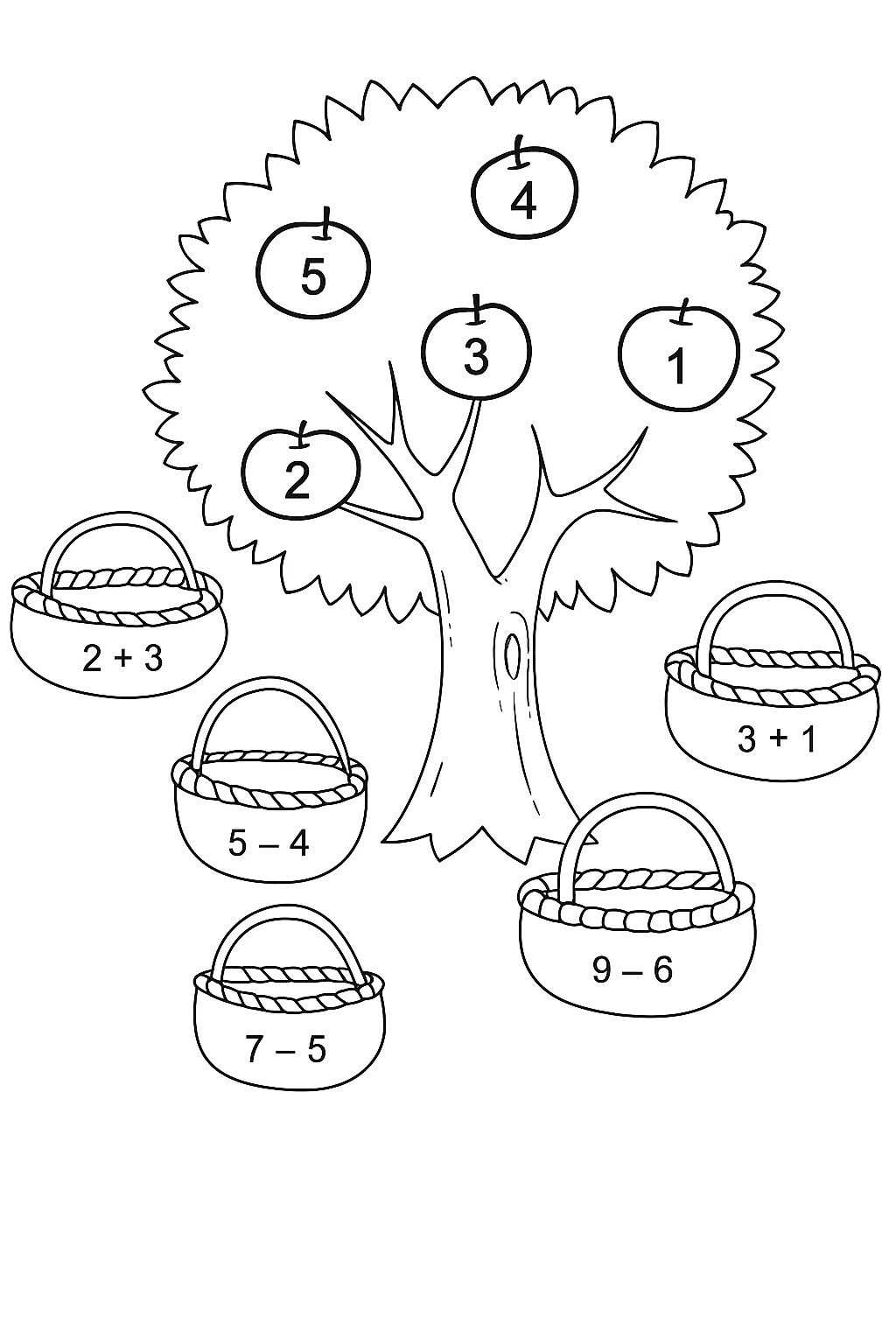 Розвиваючі розмальовки для дітей математичне дерево-сортування — це чудова розфарбовка, яка допомагає малюкам навчитися рахувати, розв’язувати прості приклади та розвивати логічне мислення. Малюнок розмальовка із деревом і кошиками для чисел перетворює навчання на веселу гру, де кожен приклад має своє рішення. Така розфарбовка стимулює інтерес до математики, тренує пам’ять і уважність. Цю розмальовку можна легко скачати та роздрукувати у форматі А4, щоб дитина могла поєднувати навчання з творчістю.
