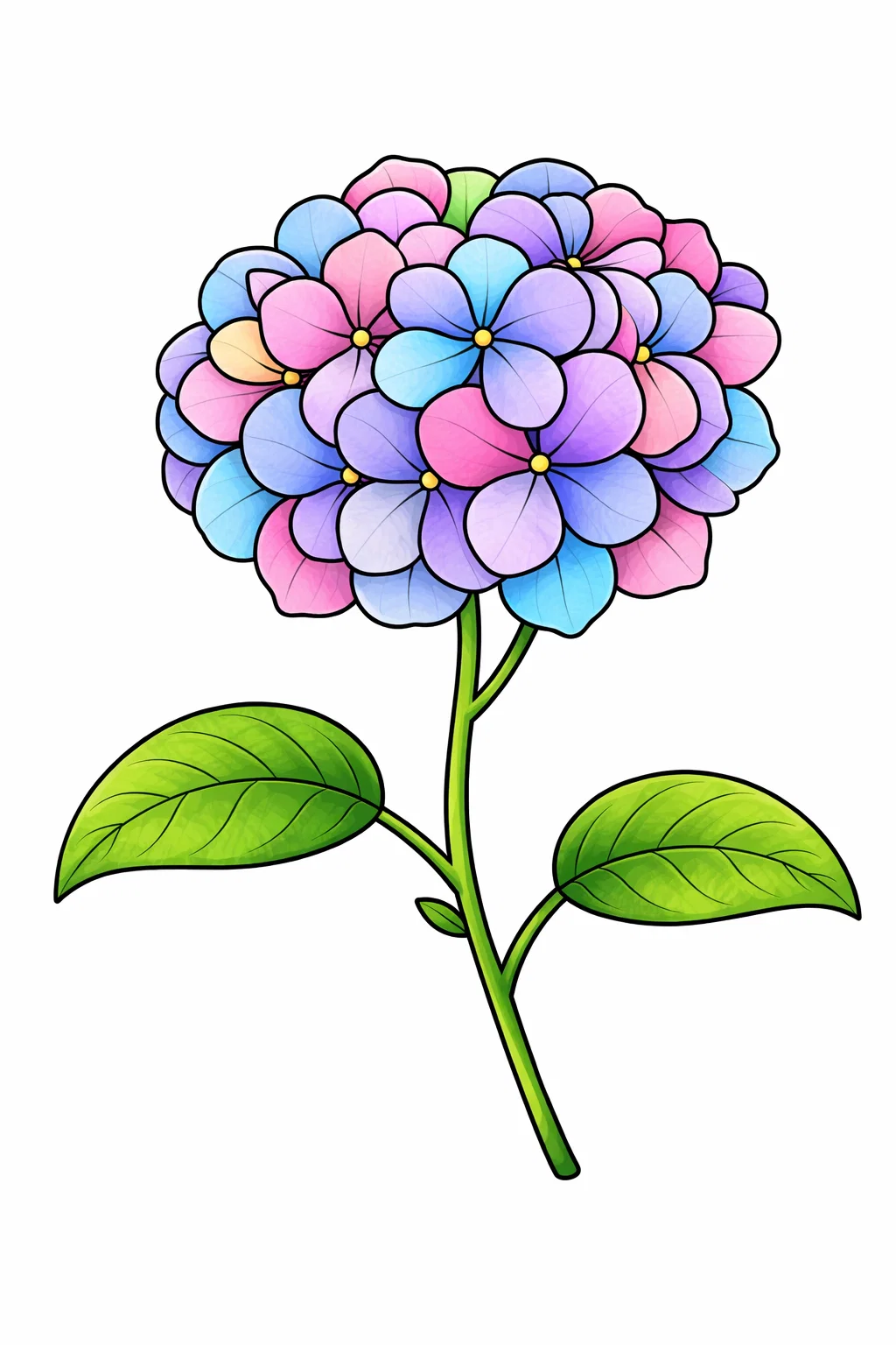 Розвиваюча розмальовка з зображенням прекрасної гортензії — ідеальний варіант для творчого дозвілля дітей та дорослих. Цей малюнок розмальовка допоможе дитині розвивати уважність, дрібну моторику та кольорове сприйняття. Завдяки простим та чітким лініям, розфарбовка підходить як для найменших, так і для школярів. Розмальовуйте пелюстки різними кольорами, експериментуйте з відтінками та створюйте справжній витвір мистецтва. Малюнок можна безкоштовно скачати та роздрукувати у форматі А4.