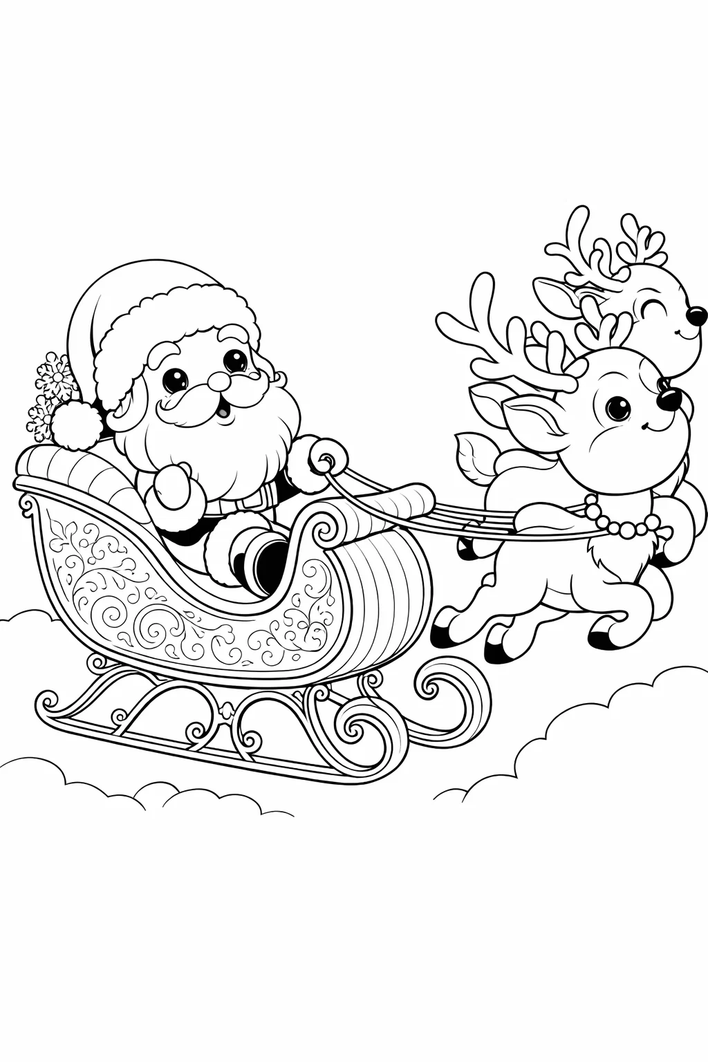 Чарівна розмальовка для дівчат та хлопчиків із зображенням Санти, який мчить небом у казкових санях, запряжених веселими оленями — ідеальний варіант для новорічного настрою! Цей милий малюнок розмальовка не лише розважає, а й розвиває уяву, уважність і дрібну моторику дитини. Завдяки великій кількості деталей, розфарбовка буде цікавою для дітей різного віку. Завантажити її можна безкоштовно у форматі А4 — просто скачати та роздрукувати, щоб розпочати творчу зимову пригоду.