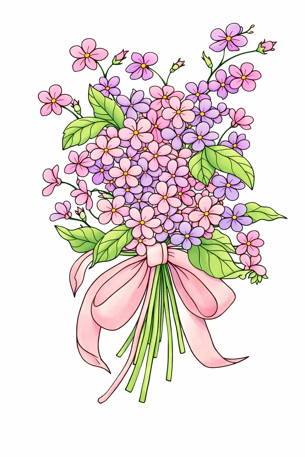 Ніжна святкова розфарбовка із красивим букетом польових квітів стане чудовим варіантом для творчого відпочинку дітей і дорослих. Детальний малюнок розмальовка із маленькими квітами та декоративним бантом дозволяє створити яскраву кольорову композицію. Така розфарбовка допомагає розвивати фантазію, уважність і любов до творчості. Малюнок розмальовка можна легко скачати та роздрукувати в форматі А4, щоб використовувати для створення святкових листівок, прикрас або приємного творчого заняття вдома, у школі чи дитячому садку.