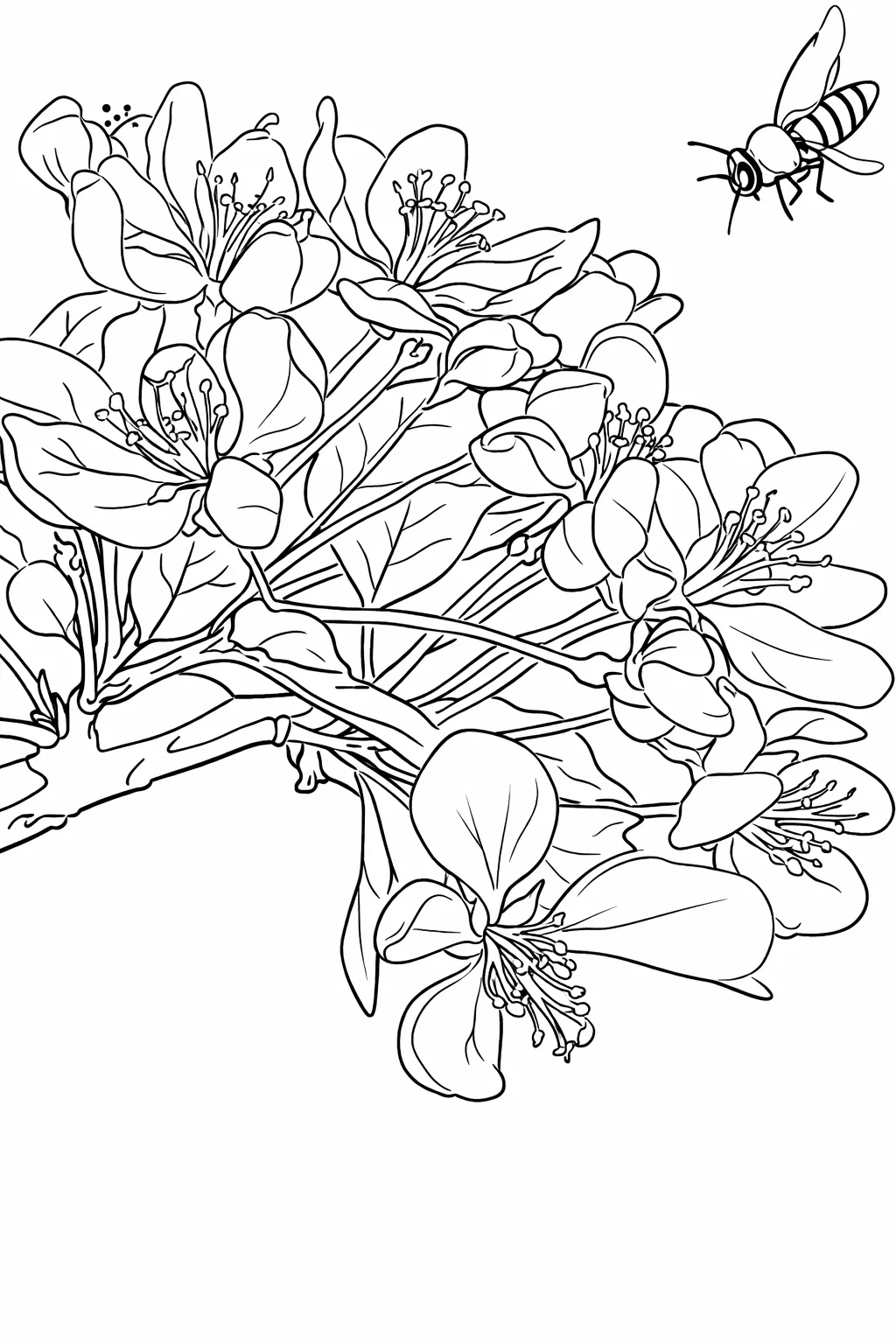Ця витончена розмальовка з серії «Пори року» передає красу весняного цвітіння яблуні з ніжними квітами та працьовитою бджілкою. Деталізований малюнок розмальовка допомагає зануритися в атмосферу весни, розвиває уважність, уяву та художній смак. Розфарбовка підійде для дітей і дорослих, чудово підходить для спокійного творчого дозвілля вдома або в школі. Зображення зручне для розфарбовування олівцями, фломастерами чи фарбами. Малюнок розмальовка легко скачати та роздрукувати у форматі А4 для приємних творчих занять.