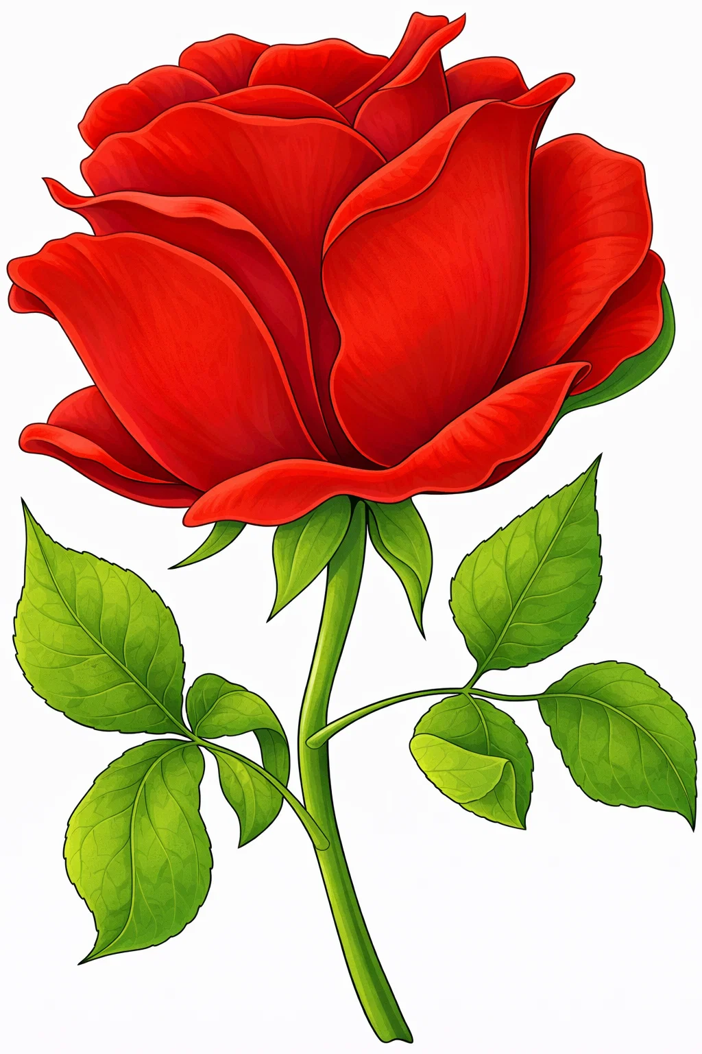 Красива квіткова розфарбовка з великою трояндою стане чудовим варіантом для творчості та святкового декору. Детальний малюнок розмальовка із ніжними пелюстками та листям дозволяє створювати яскраві або пастельні кольорові поєднання. Така розфарбовка підходить для дітей і дорослих, допомагає розвивати фантазію, уважність та художній смак. Малюнок розмальовка легко скачати та роздрукувати в форматі А4, щоб використати його для святкових листівок, подарункових прикрас або творчих занять вдома.