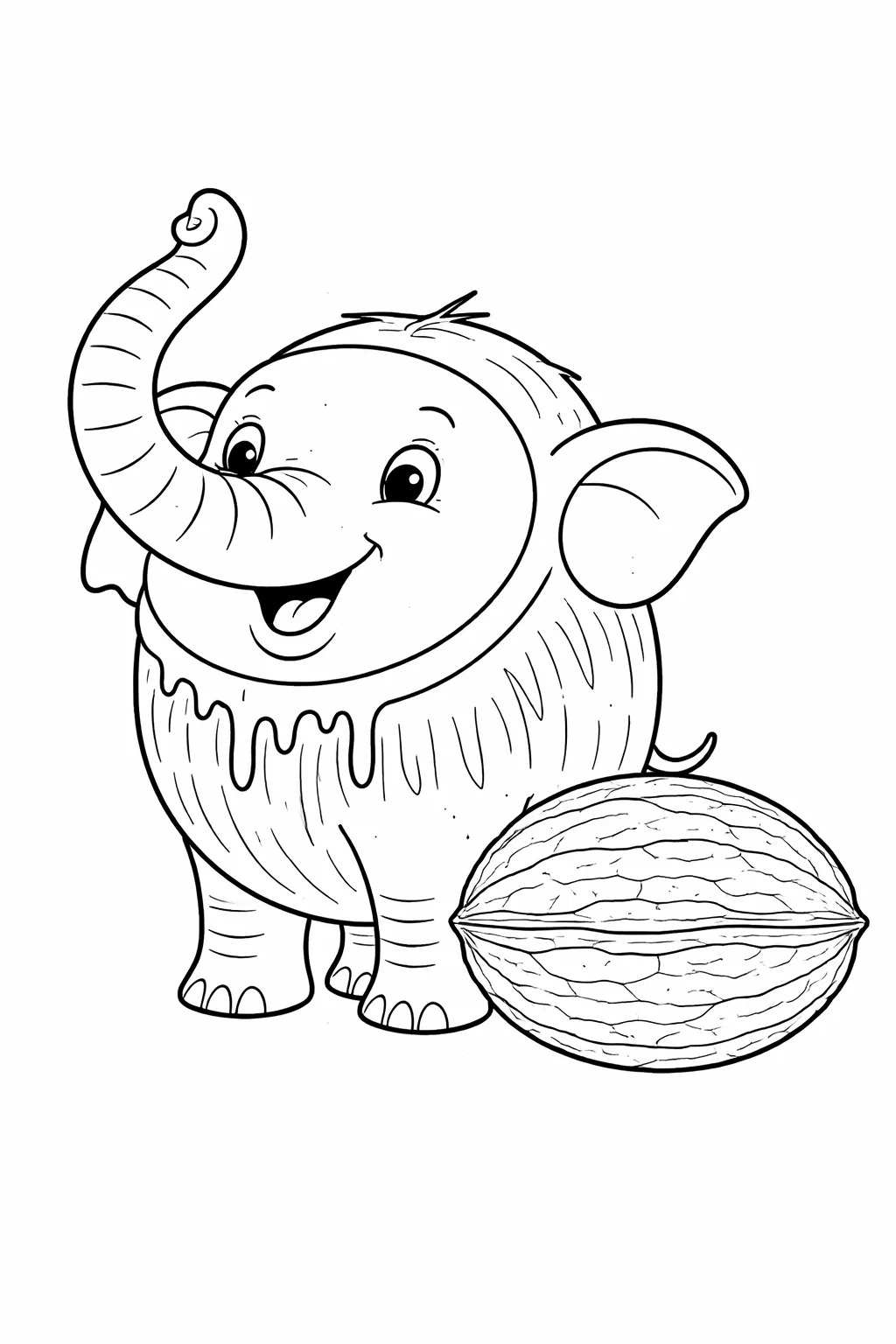 Ця розмальовка для дорослих із милим слоненям та великим горіхом створена для спокійного та приємного творчого відпочинку. Малюнок розмальовка виконаний у чорно-білому стилі з чіткими контурами на білому фоні, що ідеально підходить для розфарбовування олівцями, фломастерами або маркерами. Така розфарбовка допомагає зняти напругу, покращити настрій і розвинути фантазію. Малюнок розмальовка легко скачати, роздрукувати у форматі А4 та використовувати вдома, у школі або для арт-терапії.